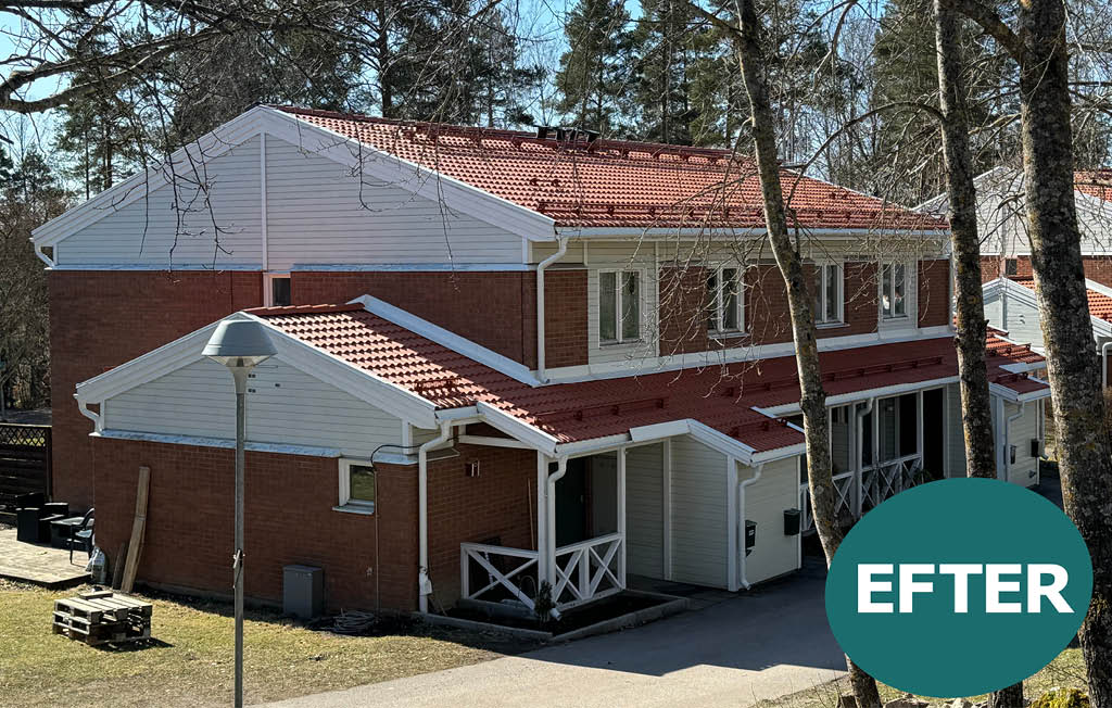 Nu är takbytet i bostadsområdet Gäddan i Strängnäs färdigställt – och resultatet märks tydligt. De nya taken ger ett trevligare helhetsintryck och ett bättre skydd för husen, samtidigt som området behåller sin karaktär.